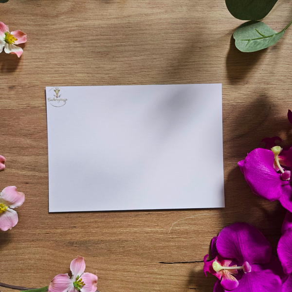 Die Rückseite ist komplett weiß und bis auf ein kleines Logo in der linken oberen Ecke unbedruckt sowie beschreib- und bestempelbar.