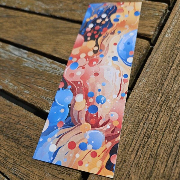 Das Lesezeichen hat das Format 5,1x14,8cm.Es ist auf 400g/m2 starken Papier gedruckt, beidseitig glänzend und glatt.